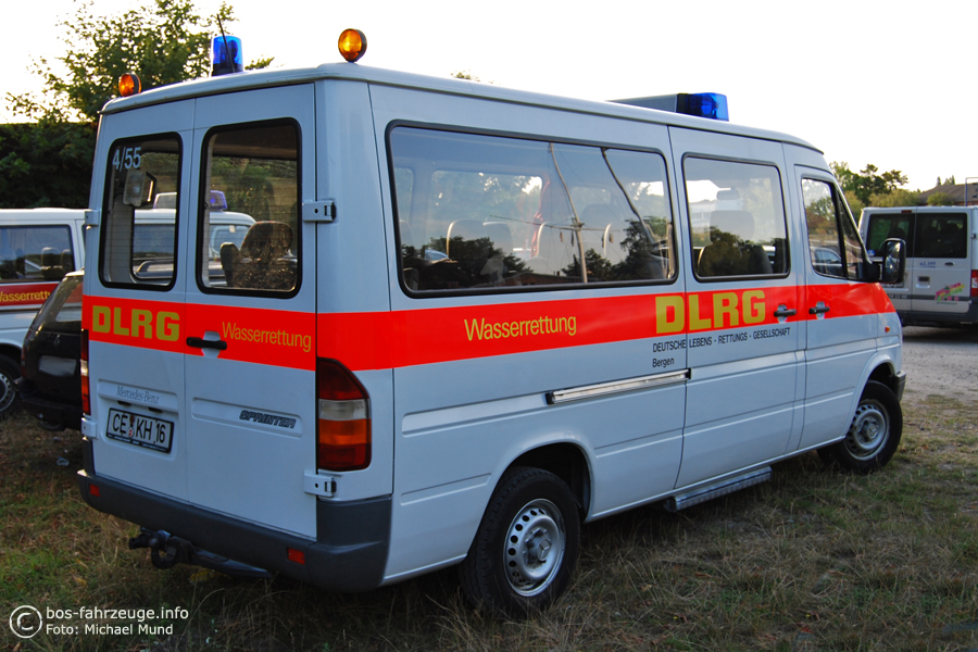 Mannschaftstransportwagen der Deutschen Lebensrettungsgesellschaft (DLRG), Ortsgruppe Bergen. Das Fahrzeug ist in die Schnell - Einsatz - Gruppe Wasserrettung integriert und gehört ebenso in den Wasserrettungszug des DLRG Bezirks Celle. Funkrufname bis 2010: Pelikan Celle 90/16